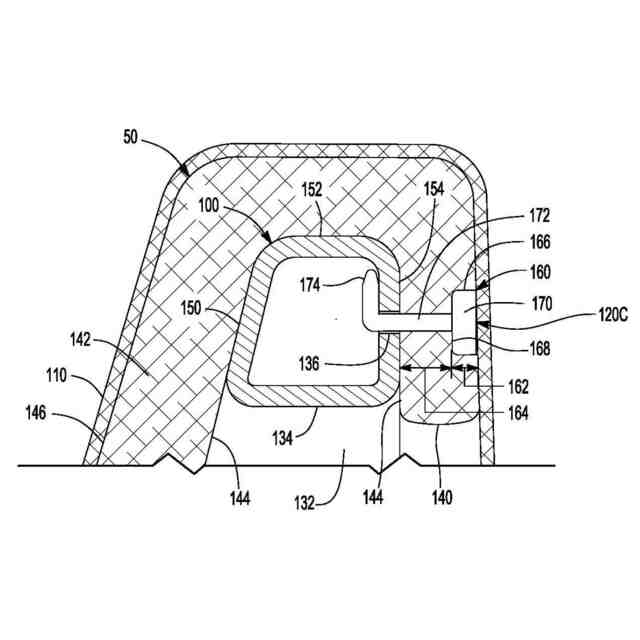 前記クッションの前記穴は、前記クッションの第2の側から延在する窪みと、前記窪みから前記クッションの第1の側まで延在する連結部と、をさらに備え、