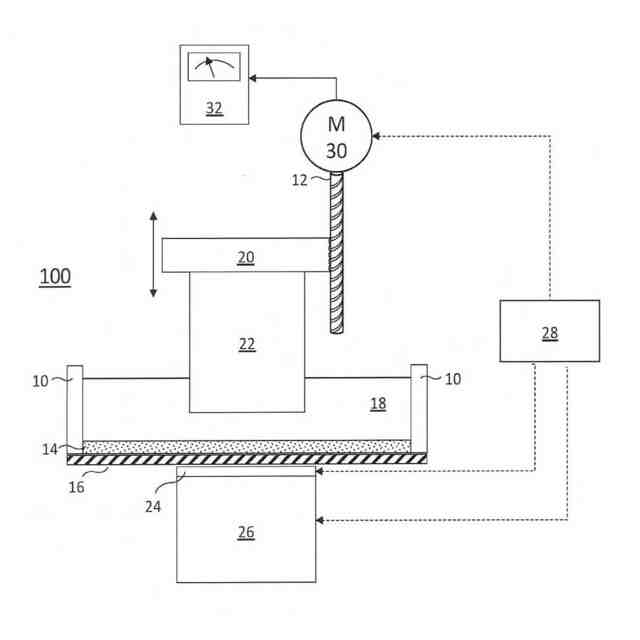 トルクメータ(32)は、モータ(30)による作動の下で造形プレート(20)を上昇させたり下降させたりするように構成されたリードスクリュー(12)と一直線に配置された回転トルクセンサを含む、請求項1に記載の方法。