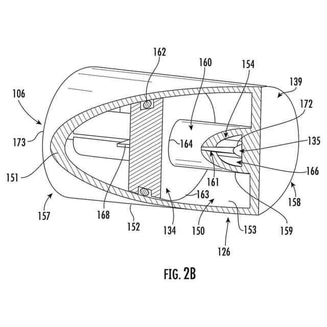 多くの着用可能な薬物送達機器は、液体薬品を貯蔵するためのリザーバを含む。駆動機構を含むポンプ機器は、貯蔵された液体薬品をユーザーへ送達するためにリザーバから押し出すために作動される。いくつかの従来の容積式ポンプ機器は、駆動機構のプランジャを使用してリザーバから液体薬品を押し出す。したがって、駆動機構は、おおよそリザーバの長さに等しい長さを持つ。リザーバが充填されたとき、駆動機構は、プランジャが流体を押し出すためにリザーバの長さにわたって動けるようにするために、薬物送達機器の長さが著しく大きく例えばリザーバのほぼ2倍の長さであることを必要とする。充填されたリザーバ又は予充填カートリッジ及び対応する駆動機構コンポーネントを収めるために薬物送達機器のサイズを増大することは、かさ高な機器になり、これを着用するユーザーにとって不快となる。