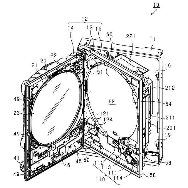 以下、遊技機の一種であるパチンコ遊技機(以下、「パチンコ機」という)の第1の実施の形態を、図面に基づいて詳細に説明する。図1はパチンコ機10を正面側から見た斜視図、図2及び図3はパチンコ機10の主要な構成を展開して示す斜視図である。なお、図2では便宜上パチンコ機10の遊技領域PE内の構成を省略している。