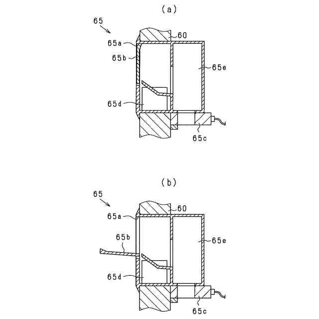 (a)は閉鎖状態である場合の第2作動口の概略図、(b)は開放状態である場合の第2作動口の概略図である。