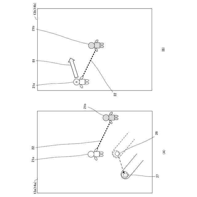 しかしながら、第1プレイヤオブジェクトのプレイヤは、そのように表示範囲外にいる第2プレイヤオブジェクトの位置を間接的に把握できたとしても、その移動方向まで把握することができない。そのため、第2プレイヤオブジェクトがいずれかの方向に移動した場合、第1プレイヤオブジェクトのプレイヤは、その移動方向を把握することができず、第1プレイヤオブジェクトに対して不慮の制約を受けるので、思うようにプレイすることができない。