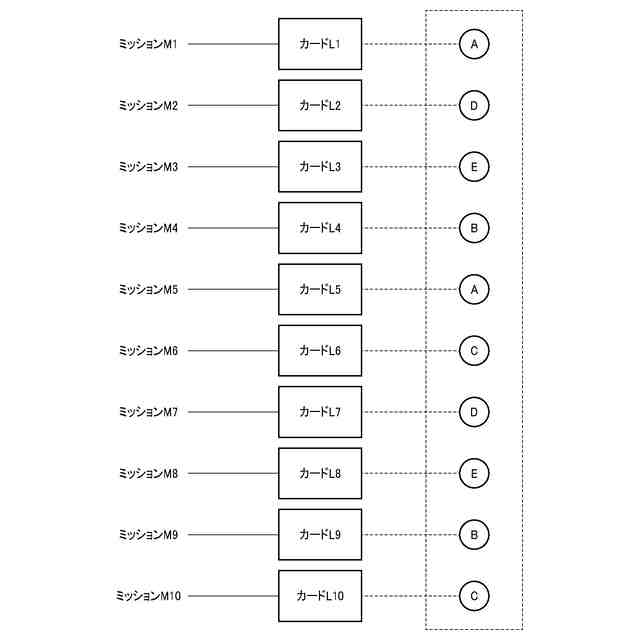 ミッション、カードおよびシンボルの関係を示す概念図である。