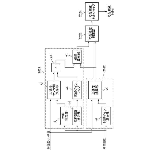 実施形態1における勾配抵抗&制動力要求相当分トルク算出部の詳細を表す制御ブロック図である。