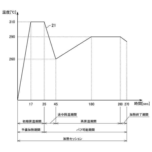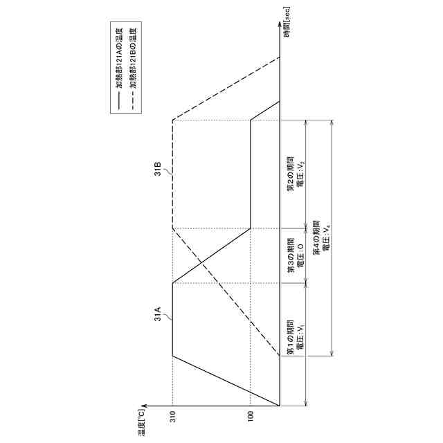 前記制御部は、前記温度設定に含まれる複数の期間のうち、第1の期間において第1の電圧が前記加熱部に印可され、前記第1の期間とは異なる第2の期間において前記第1の電圧とは異なる第2の電圧が前記加熱部に印可され、前記第1の期間と前記第2の期間との間に含まれる第3の期間において電圧が前記加熱部に印可されず、前記第2の期間の後に続く第5の期間において電圧が前記加熱部に印可されないよう制御する、