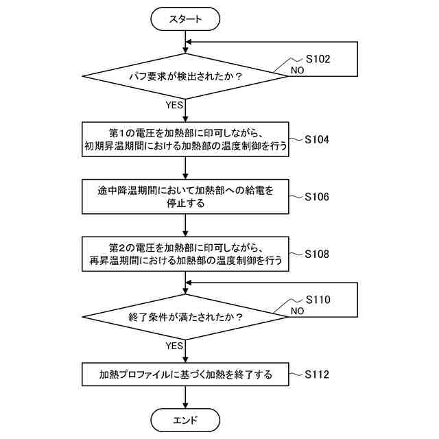 典型的には、基材を加熱する期間において、ユーザにより行われるパフ等の影響で発熱素子の温度は不規則に変化するので、上記特許文献1に記載の技術では、出力電圧が頻繁に調整されることになり得る。このような不規則且つ頻繁な電圧の調整は、種々の不都合を引き起こし得る。