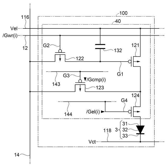 従来、特許文献1に示すように、発光部と該発光部を駆動する駆動回路とを有する画素がマトリクス状に配列された表示装置において、列方向における第m番目の画素と第(m+1)番目の画素とが、第m番目の画素と第(m+1)番目の画素との間で行方向に延びる境界線に対して線対称に設けられており、当該境界線上にシールド壁が形成されている表示装置が知られている。