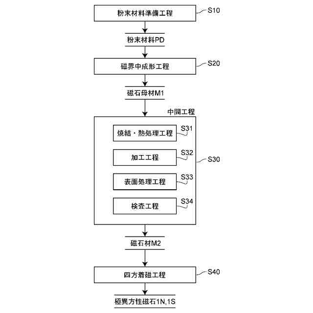 磁石用の粉末材料を準備する粉末材料準備工程と、