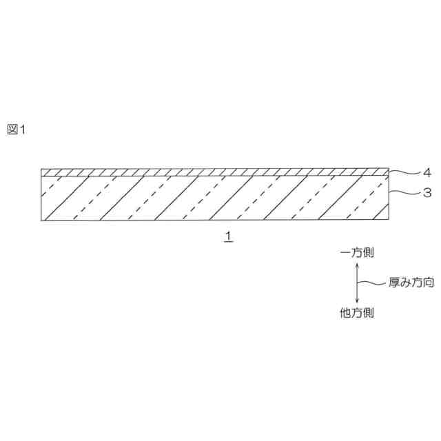 本発明[1]は、基材層と硬化樹脂層とを厚み方向一方側に向かって順に備え、前記硬化樹脂層の厚み方向一方側に対して、X線光電子分光法を用いて測定される285eVのC-C結合に帰属されるピーク強度I