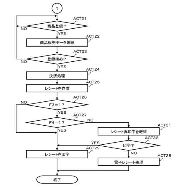 取引対象者を識別する識別子と関連付けて紙レシートを受け取るか否かを設定したフラグを記憶する記憶部を検索する検索手段、