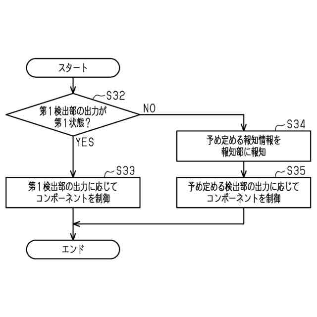 前記第1検出部の出力が第1状態の場合、かつ、前記第2検出部の出力が第2状態の場合、前記第1検出部および前記第2検出部の少なくとも1つの出力に応じて前記コンポーネントを制御し、