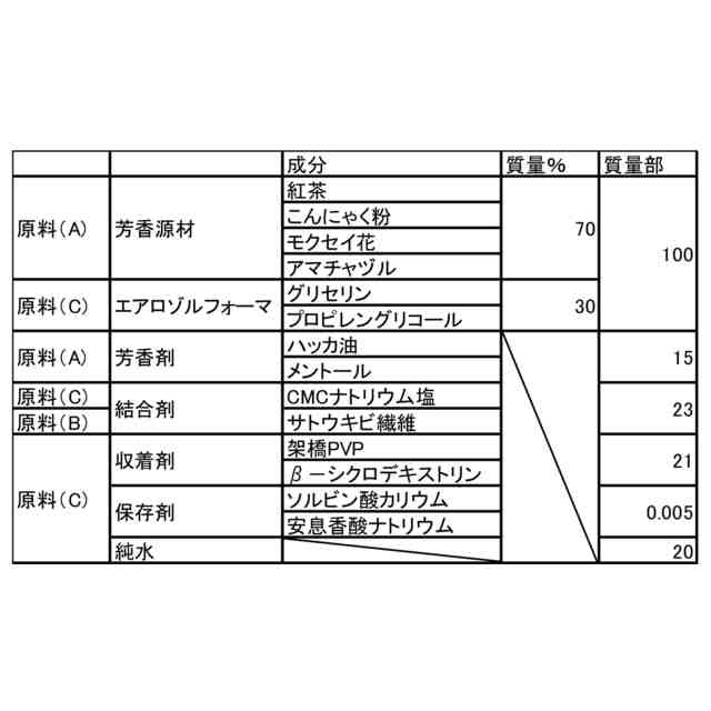 芳香源材の揮発性成分である芳香の拡散率は、固相よりも液相の方が大きい。このため