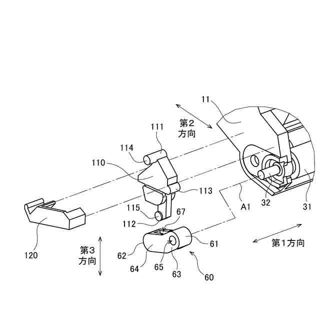 前記第1レバーが前記第1位置の場合、前記第1レバーの前記他端部は、前記第1孔の内面を押圧せず、