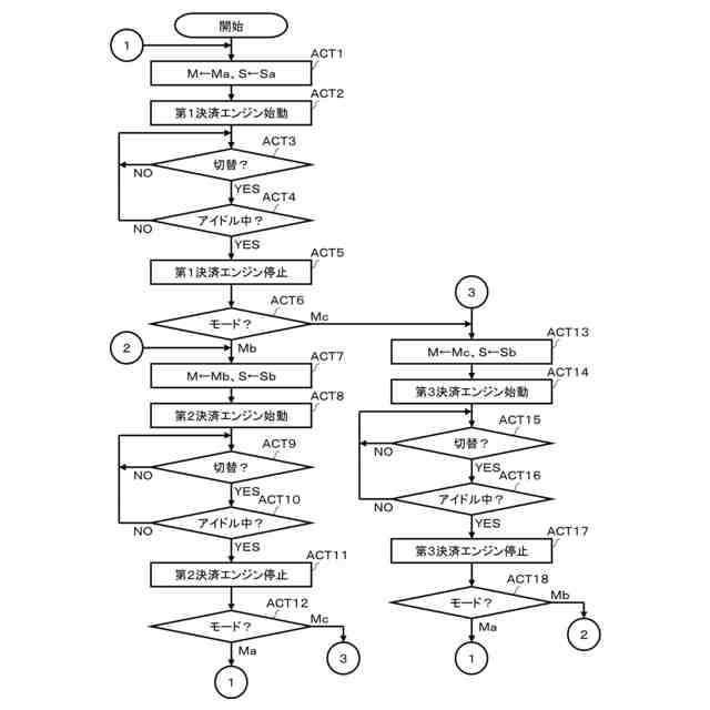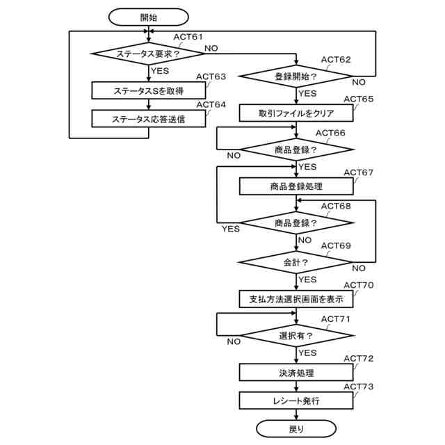 図7は、会計機のプロセッサが第1決済エンジンプログラムに従って実行する情報処理の手順を示す流れ図である。