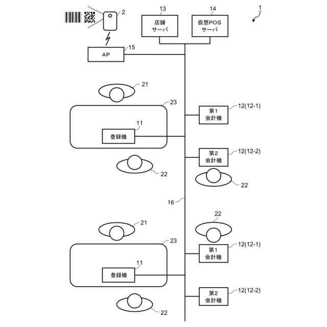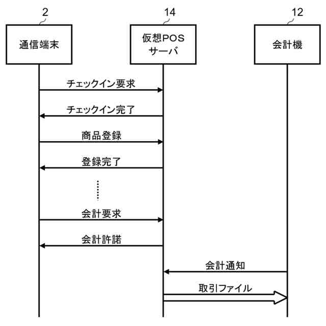 その一方で、商品が陳列されている売場において、客がスマートフォン、タブレット端末等の通信端末を自ら操作して購買商品に係るデータをセルフで入力し、その購買商品の代金支払いも客が専用の会計機を操作してセルフで行うようにした端末入力方式の取引処理システムもすでに知られている。端末入力方式の取引処理システムは、購買商品に係るデータの入力を客が売場において行うため、店員が操作していた登録機を不要にできる。