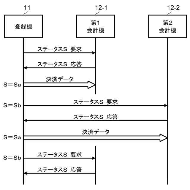 図12は、第2の実施形態において、会計機のプロセッサが第1決済エンジンプログラムに従って実行する情報処理の手順を示す流れ図である。