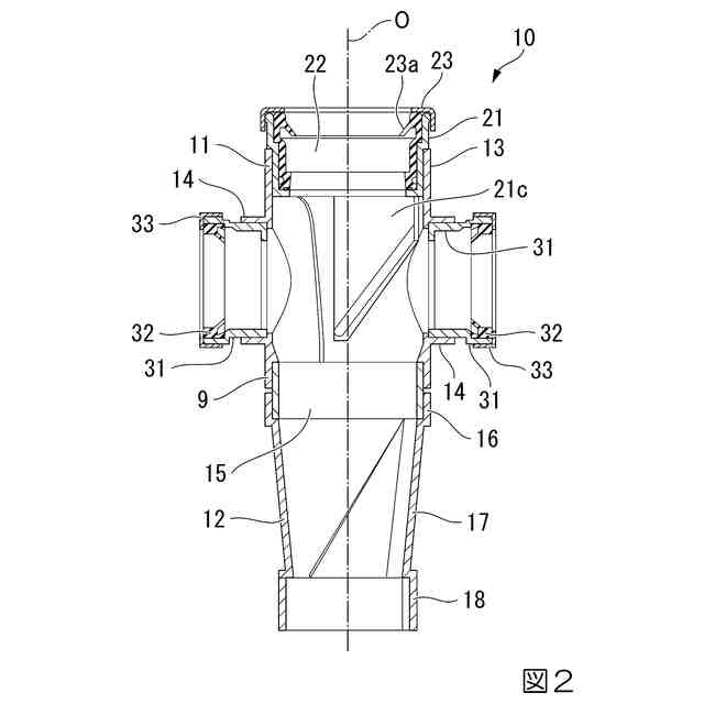 特許文献2に記載の構造では、耐火性を発現するために、パイプを閉塞できる程度の大きな旋回羽根を設置する必要があった。しかし、スラブ厚みが薄い場合、集合継手の下部がスラブに埋設されないため、下の階に火炎が発生した場合に継手下部が旋回羽根とともに燃え落ちてしまうおそれがあり、場合によっては耐火性が発現されないおそれがある。