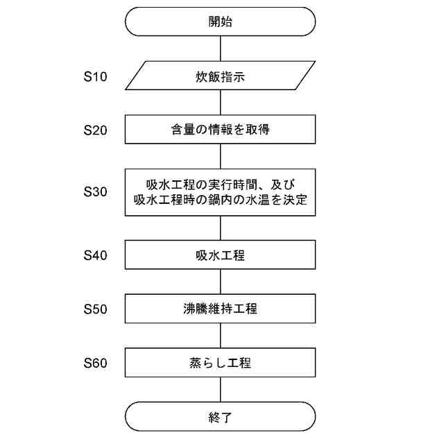 米飯の食味を向上させる手段の一つは、吸水工程の終了時(次の工程である沸騰維持工程の開始時)において、容器内に残存する水量(米に吸水されていない水量)が適量とされることである。