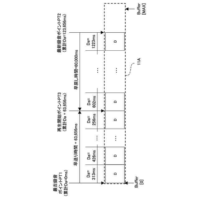 本発明の一実施形態に係る電子楽器に備えられるリングバッファへの演奏データの書き込みに関する説明図である。