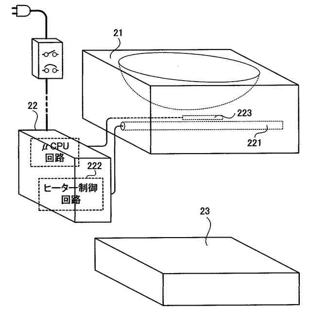 また、特許文献2に示された従来技術では、食材収容ボウル底面の下に電磁誘導や電熱線ヒーターなどの電気加熱手段を配置して、直接にボウル全体を加熱する方式である。係る方式は構造が簡単であり、かつ容易に実現することが可能であるが、ややもすると加熱量が過大或は過小となってしまい、前述の湯煎を用いるようなデリケートな微温による加熱・保温処理を実現することが難しかった。