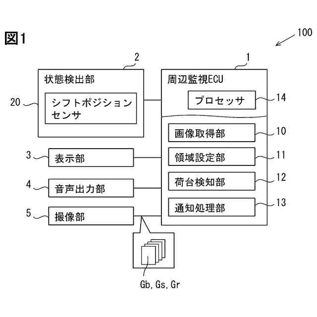 荷台検知部が検知対象の変化を検知した場合に、音声出力部(4)による音出力および画像出力部(3)による通知画像(Pi)の表示の少なくとも一方により、検知対象の変化を車両のユーザに通知する通知処理部(13)と、を備える。