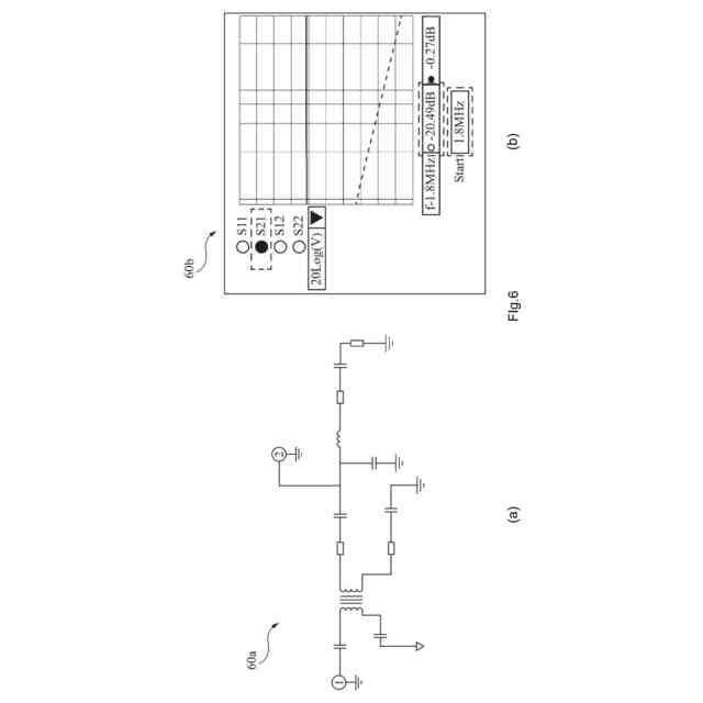 図6(a)及び図6(b)は、図5に示す第1の充電スタンドの例での等価回路及び挿入損失の概略図である。