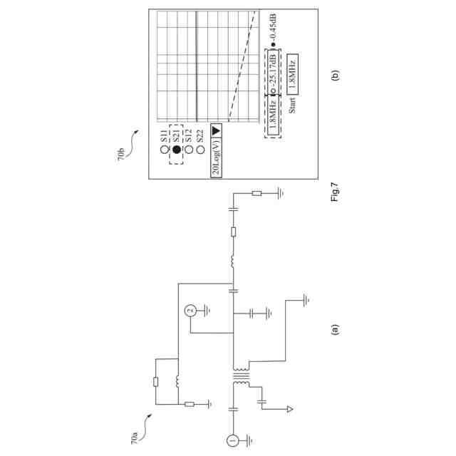 図7(a)及び図7(b)は、図5に示す第2の充電スタンドの例での等価回路及び挿入損失の概略図である。