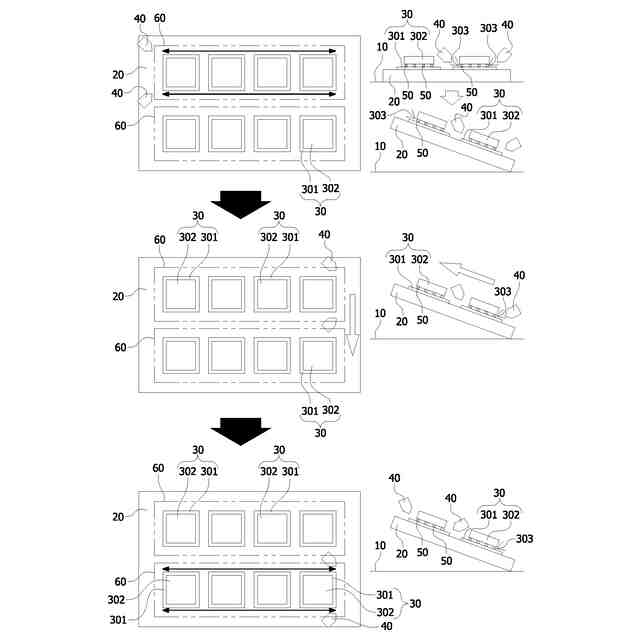 以上を踏まえ、本発明は、洗浄過程で治具と基板を傾斜させ、チップと基板間の隙間を効果的に洗浄して洗浄効率と効果を高める半導体チップ傾斜洗浄方法を提供し、従来技術の高精度チップ洗浄における限界を改善して半導体製造業により高効率、包括な洗浄ソリューションを提供することを目的とする。