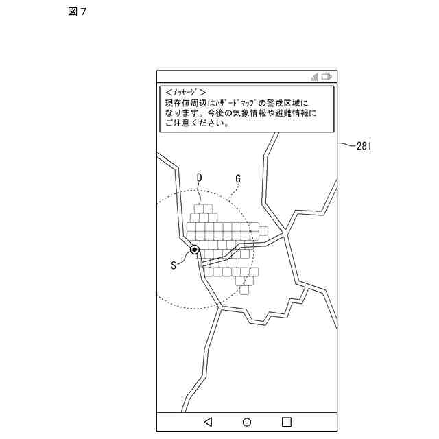 図7は、表示装置の表示画面を示す図であり、危険エリアを表示したときの他の例を示している。