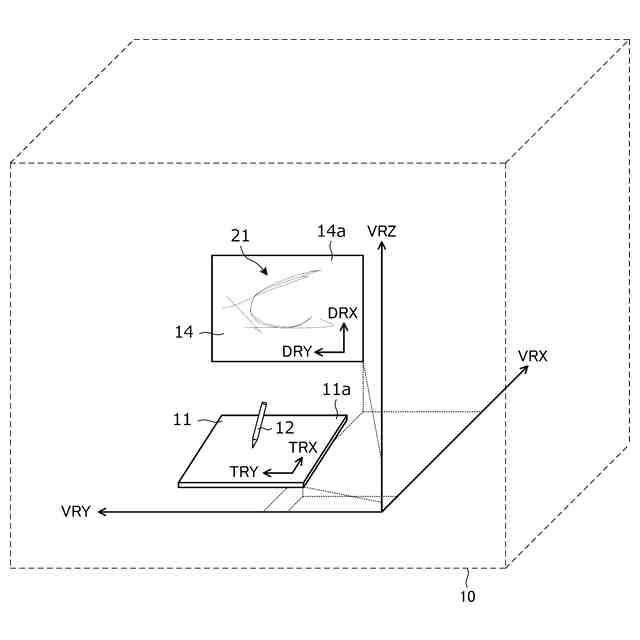 【解決手段】描画面を有するデジタイザであり前記描画面における電子ペンの位置を検出する前記デジタイザと通信可能に構成されるコンピュータによって実行される方法であって、3Dオブジェクトである表示面オブジェクトを仮想現実空間内にレンダリングし、前記デジタイザにより検出された前記描画面における前記電子ペンの位置に基づいて生成される3Dオブジェクトである線オブジェクトを、前記表示面オブジェクトに沿って、前記表示面オブジェクトとは独立した3Dオブジェクトとして前記仮想現実空間内にレンダリングし、前記線オブジェクトは、前記表示面オブジェクトの表示面上から移動可能に構成される。