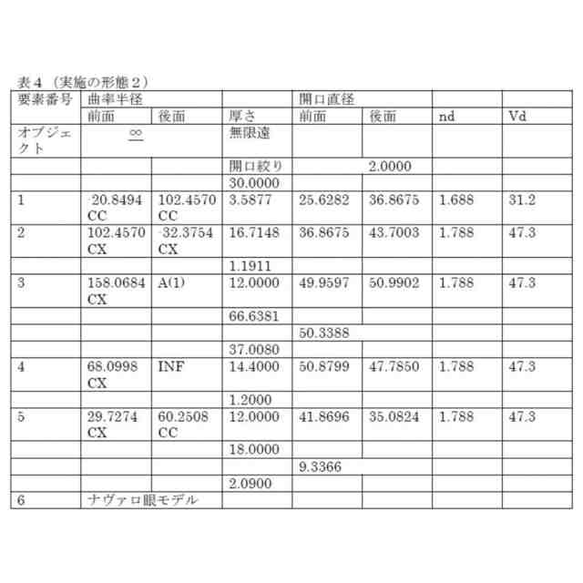 本発明の考え方に従って構成されたアフォーカルリレーシステムを表し且つ人間の眼のナヴァロモデル(Navarro model)と組み合わせて示された、光学列500の第2の実施の形態を示す。