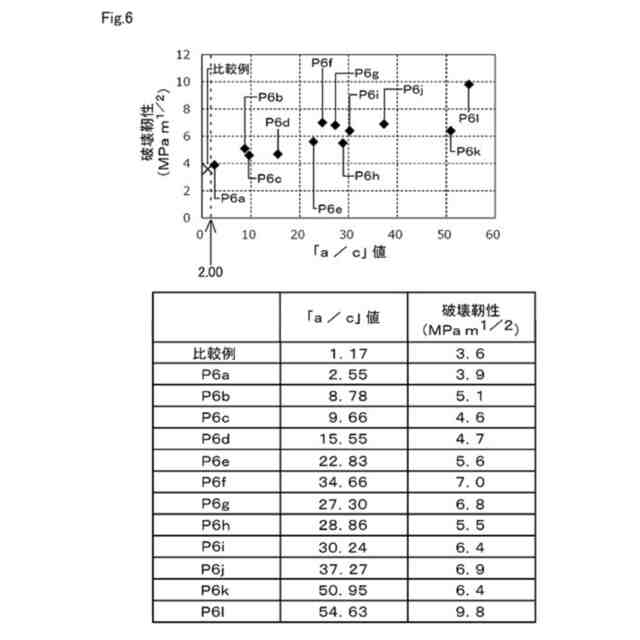 本実施形態に係るセラミックス基板の破壊靭性と「a/c」値との相関関係を示す図。