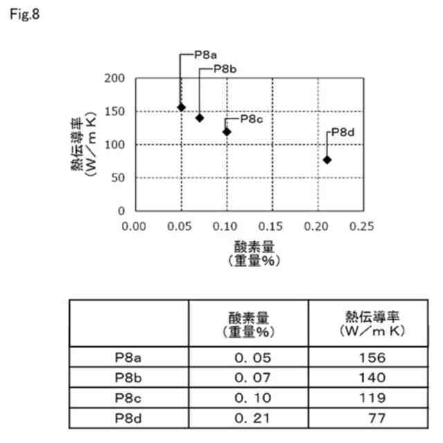 本実施形態に係るセラミックス基板の熱伝導率と酸素量との相関関係を示す図。