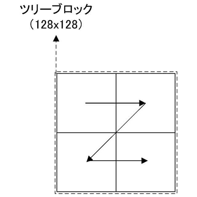 再帰的分割における対象ブロックを水平方向かつ垂直方向に4分割して4つのブロック