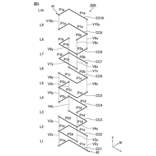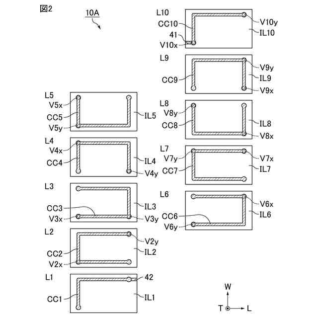 図3は、図2に示す積層体に内蔵されているコイルの分解斜視図である。