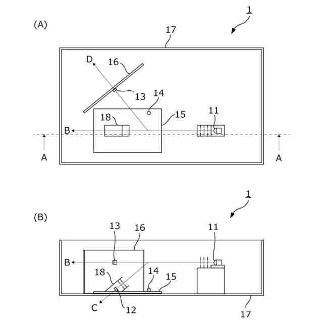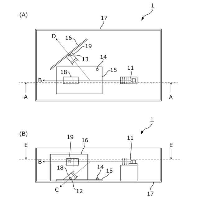 光電式の煙検知装置のさらに一方式として、2受光式と呼ばれる方式がある。2受光式の煙検知装置は、発光部から発光軸方向に偏光を発光し、発光軸に対し異なる方向から交差する受光軸を有する2つの受光部が生成する信号に基づき、空気中の煙の種類を判定する。