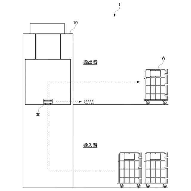 特許文献1に記載された自動走行システムは、フロア内における貨物の搬送について記載しているが、複数の階をまたいでの搬送については考慮していない。物流の分野ではないが、工事現場において、自律走行する自動搬送手段を用いて資機材を運ぶ自動搬送システムとして特許文献2がある。特許文献2では、資機材を保持した自律搬送手段を工事用エレベータや工事用リフトに乗せ、目的階へ運ぶことにより、異なる階にある目的地へと資機材を搬送する。