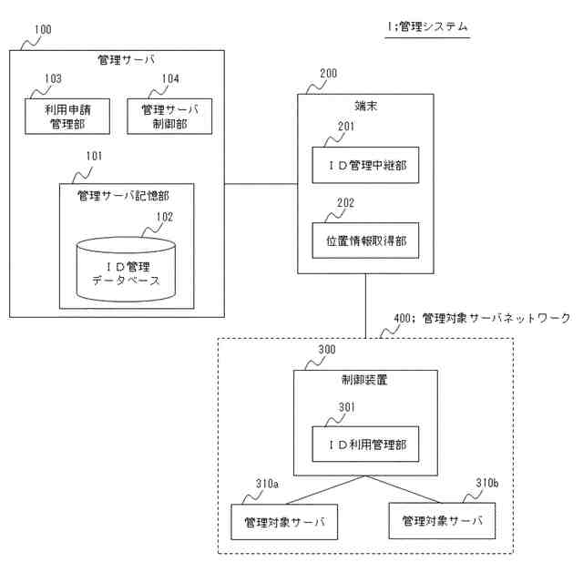 【解決手段】管理システムは、所定の権限を有する第1のIDを利用して、操作可能である、管理対象装置と、管理対象装置を制御する、制御装置と、自端末の位置を示す端末位置情報を取得し、制御装置に端末位置情報を送信する、端末と、を含む。制御装置は、管理対象装置に対して端末の認証を要求し、管理対象装置が端末を認証した場合、端末位置情報と、利用判断時刻とに基づいて、第1のIDの利用を、端末に許可するか否かを判断する、ID利用管理部を備える。