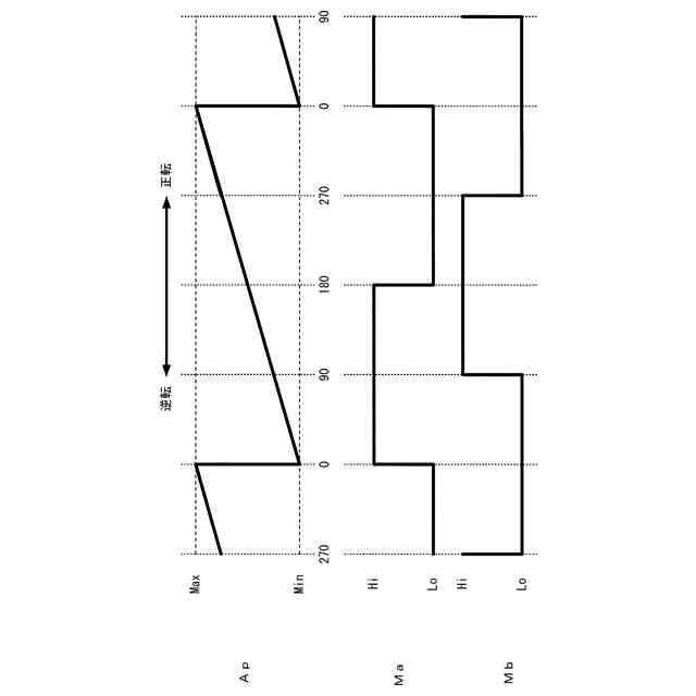 角度位置信号、A相多回転信号、及びB相多回転信号の波形の一例を表す説明図である。