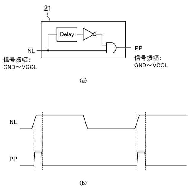 前記第1信号の立ち上がり遷移のとき所定期間パルスを発生させるパルス信号を、生成するパルス生成回路と、
