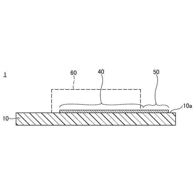 Nを含む膜から形成された抵抗体と、前記基材上に形成され、配線を介して前記抵抗体と電気的に接続された一対の電極と、を有し、測定対象物のひずみ方向に対して前記抵抗体のグリッド方向が直交し、前記一対の電極は、前記抵抗体を挟んで前記ひずみ方向と直交する方向の両側に配置され、かつ、前記ひずみ方向の両側に配置されている。