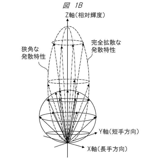 一般的な液晶パネルの輝度角度特性(短手方向)を示す図である。