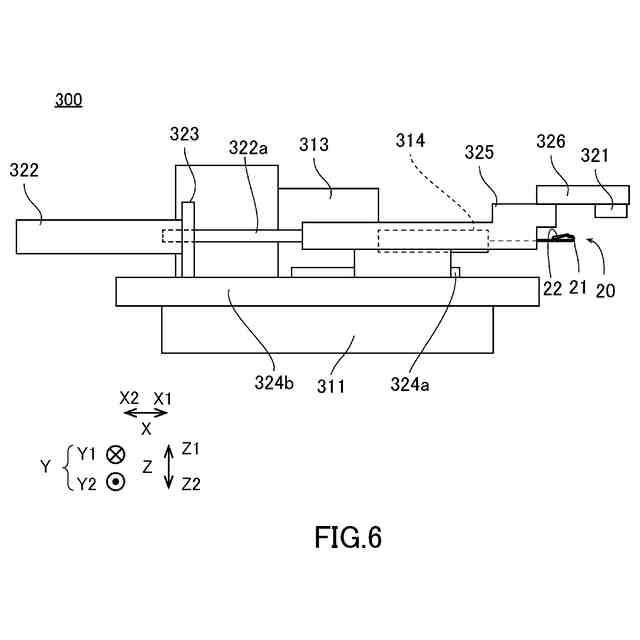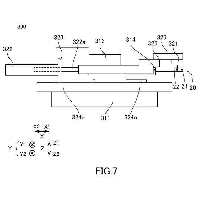 図7は、磁石321と植毛鉤針20との相対位置が開放位置となる状態の移動機構部300の構成を示す図である。
