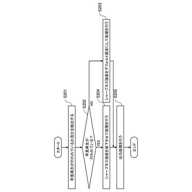 前記処理部は、前記早見再生が行われていないと前記解析部により解析された場合は、前記映像データに対して第1のシャープネス強度のシャープネス処理を行い、前記早見再生が行われていると前記解析部により解析された場合は、前記映像データに対して前記第1のシャープネス強度より低い第2のシャープネス強度のシャープネス処理を行う