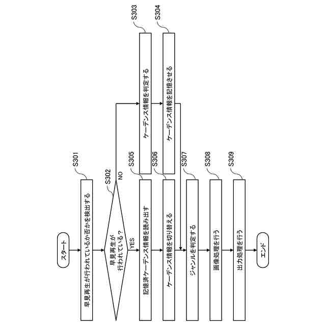 前記処理部は、前記早見再生が行われていないと前記解析部により解析された場合は、ケーデンス情報を判定し、前記映像データに対して前記ケーデンス情報に応じた処理を行い、前記ケーデンス情報を記憶して記憶済ケーデンス情報を得、前記早見再生が行われていると前記解析部により解析された場合は、前記映像データに対して前記記憶済ケーデンス情報に応じた処理を行う