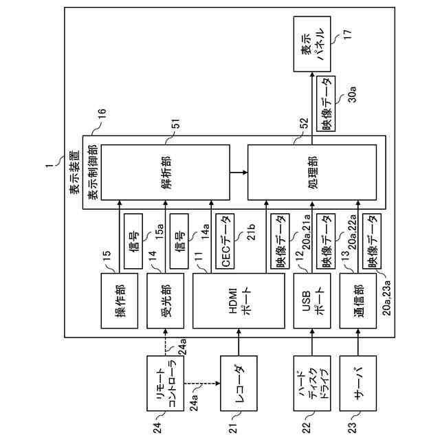 前記映像データを出力する機器をリモートコントロールするリモートコントロール信号を受信して前記リモートコントロール信号に応じた信号を出力する受信部を備え、