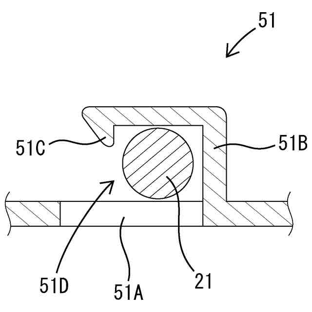 前記収容部は、前記第1配線部が軸方向に変位可能な状態で前記第1配線部を保持する保持部を有する