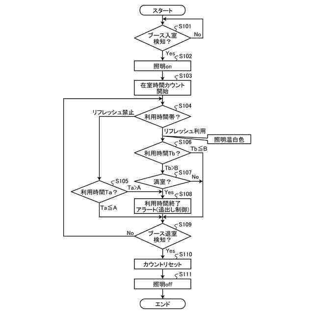 近年、トイレ空間に設けられるトイレブースにいる利用者の快適性が低下してしまうことを抑制しつつも、利用者がトイレブース内に長期滞在するおそれを防止するトイレ空間の長期滞在防止システムが提供されている(例えば特許文献1)。例えば、特許文献1に記載されたシステムでは、第1設定時間の滞在が検知された場合、照明装置及び音響装置を制御することにより利用者のトイレブースからの退出を促す。