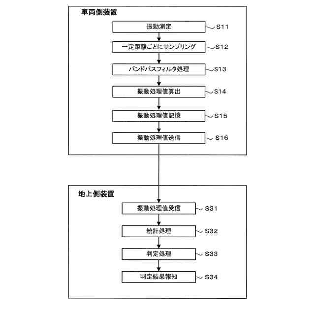車輪偏摩耗は、車輪回転周期とその高次成分の振動にピークが現れる傾向がある。特許文献2に開示される技術は、車輪回転周期の振動そのものを使用せず、一定の時間ごとに振動データを取得し、そのピーク値を使用して車輪偏摩耗の有無を判定する。一定の時間ごとに取得する振動データは、走行速度の影響を受ける。そのため、特許文献2に開示される技術は、処理後のデータにばらつきがあり、車輪偏摩耗の判定精度を改善する余地がある。