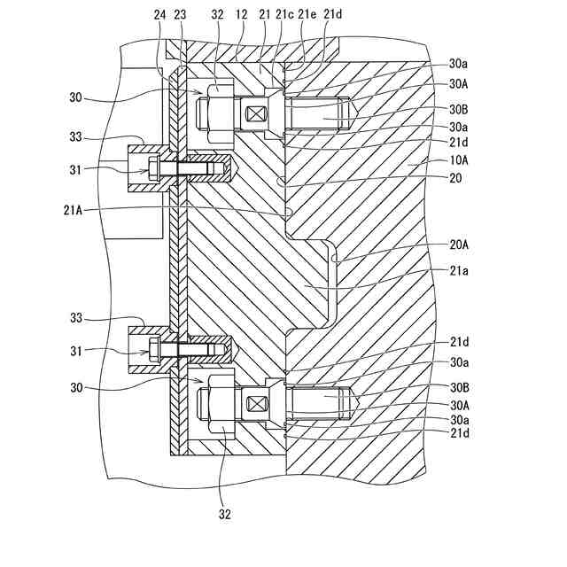 上記張出部のうち、少なくとも上記接触可能部を含むブロック部分を、上記柱部に対して着脱可能な取付けブロックとし、その取付けブロックは、柱部の面にボルト接合で固定される、